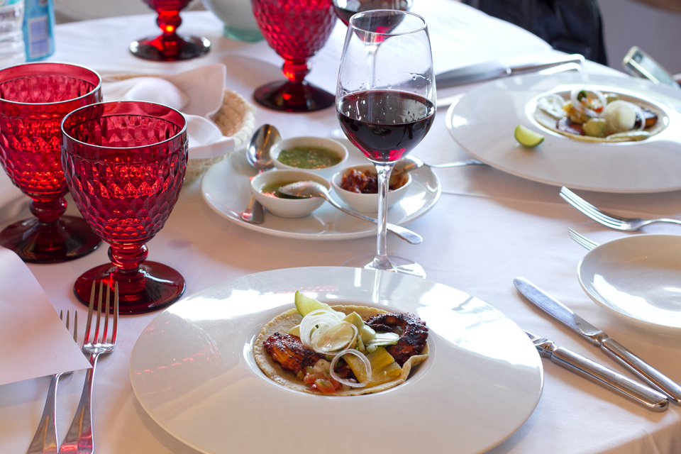 Una comida a 5 tiempos, acompañando cada platillo con una copa de vino recomendados por supuesto por la sommelier y L.A. Cetto.