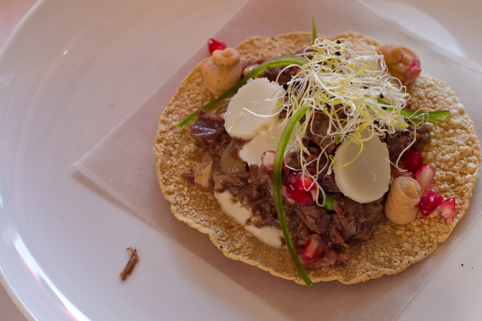 Hojaldre crujiente con cremoso de queso de Rancho y jocoque.